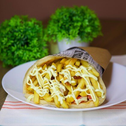 Свежайшая лепешечка в сочетании с нашим фирменным соусом «Хмели-Сумели», горячим мясом и томатами не оставят вас равнодушными Вес : 250 гр